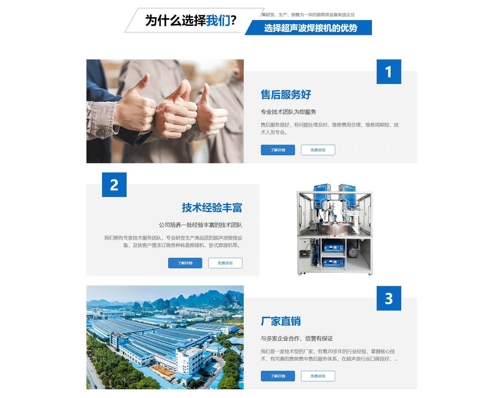 廈門(mén)勁榮機(jī)械設(shè)備有限公司是一家集研發(fā)、生產(chǎn)、銷(xiāo)售為一體的超音波設(shè)備制造企業(yè),主要產(chǎn)品包括多規(guī)格型號(hào)的超音波塑膠熔接機(jī)、熱板式塑料焊接機(jī)、多工位轉(zhuǎn)盤(pán)焊接機(jī)、振動(dòng)摩擦焊接機(jī)、旋轉(zhuǎn)式塑膠熔接機(jī)及配套的工裝夾具等。公司自2003年成立以來(lái),一直致力于產(chǎn)品不斷完善中,并追求產(chǎn)品的精益求精,于2004年向國(guó)家商標(biāo)局注冊(cè)了“勁榮”牌商標(biāo),2009年榮獲廈門(mén)市商標(biāo)。 經(jīng)過(guò)多年的努力,公司已經(jīng)發(fā)展成為占地面積2000余平方米、擁有員工50余人的企業(yè)。公司一直將“品質(zhì)是企業(yè)發(fā)展的原動(dòng)力”作為經(jīng)營(yíng)理念,嚴(yán)把質(zhì)量關(guān),建立了一整套有效的安全生產(chǎn)及管理模式,不僅贏得了同行的認(rèn)可,更取得了客戶的信賴,先后與九牧集團(tuán)、路達(dá)工業(yè)、建霖集團(tuán)、西伯電子、蒙發(fā)利實(shí)業(yè)、松霖科技、銥科集團(tuán)、科司特電子等公司建立了長(zhǎng)期的合作關(guān)系。 面對(duì)已經(jīng)取得的成績(jī),我們不驕不滿,因?yàn)樯钪獦I(yè)績(jī)只能代表過(guò)去,只有靠良好的產(chǎn)品質(zhì)量和完善的售后服務(wù)才能在客戶中口碑相傳,在...